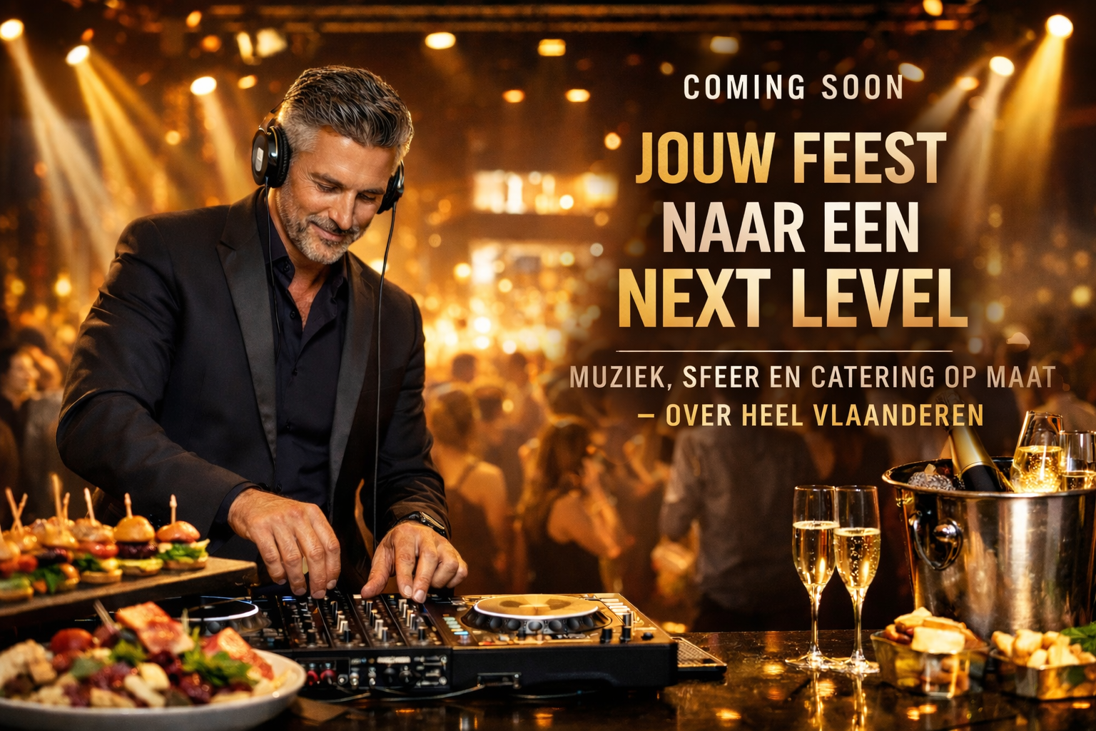 Met meer dan 20 jaar ervaring weten we perfect hoe we de sfeer van een event opbouwen. Rustige achtergrondmuziek tijdens het eten, gevolgd door een energieke vibe waar mensen spontaan beginnen te bewegen. Alles verloopt natuurlijk en afgestemd op het publiek.